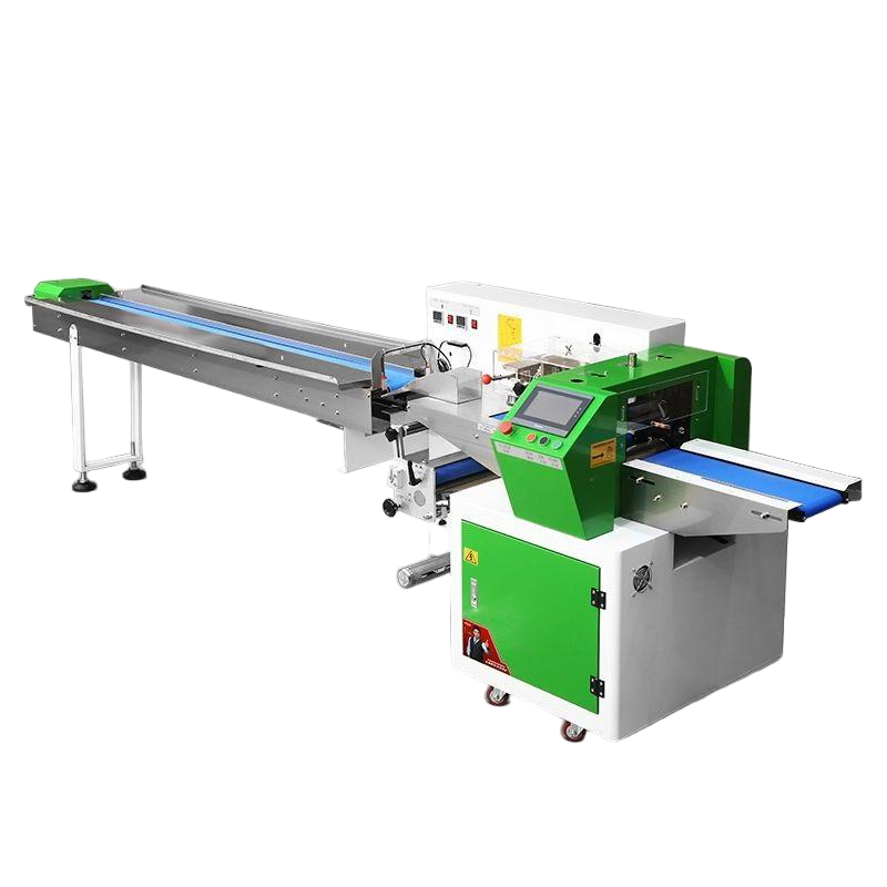 Fully servo-driven high-speed horizontal flow wrap machine with packaging speeds up to 250 packs/min.